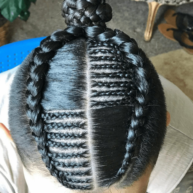 Intricately styled Ghana enhances beauty with a neat and elegant look.